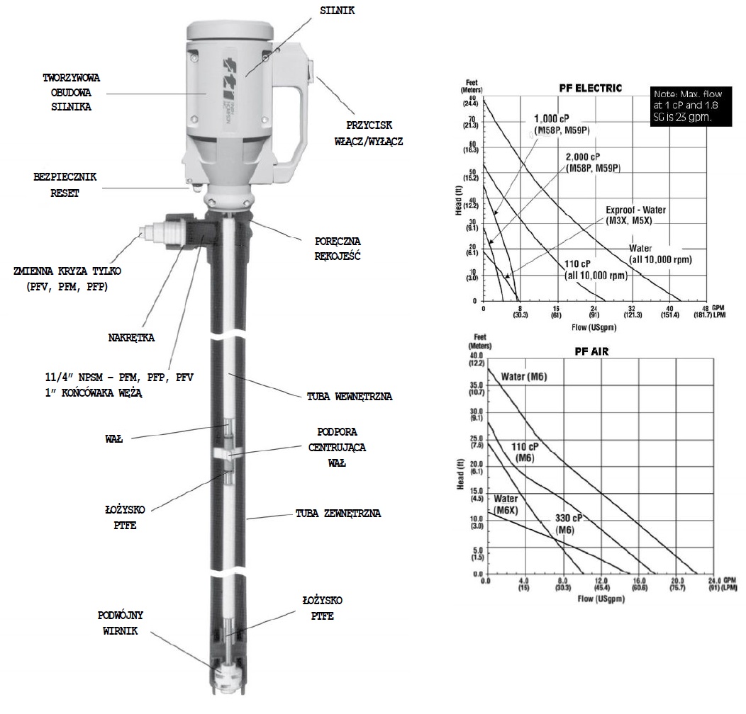 Wysokiej wydajności pompy beczkowe do transferu kwasów zasad oraz innych agresywnych substancji chemicznych.