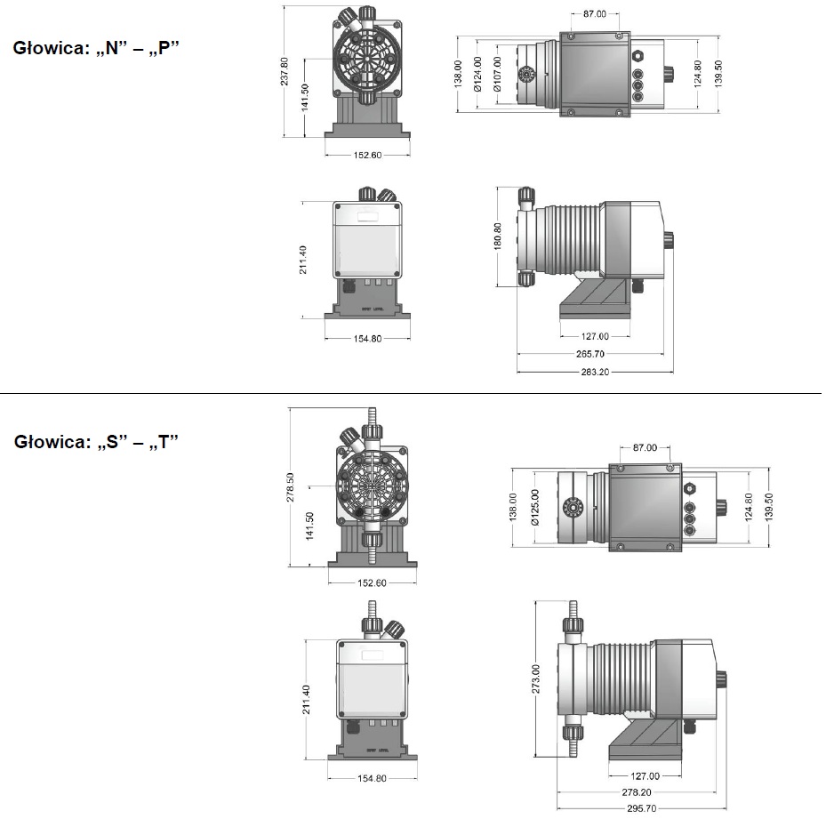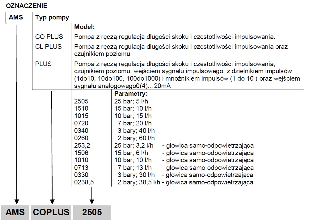 częstotliwość suwów | Powtarzalność przy zakresie długości skoku | Pobór mocy przy max przepływie (230VAC) | Pobór mocy przy max przepływie (115VAC) |