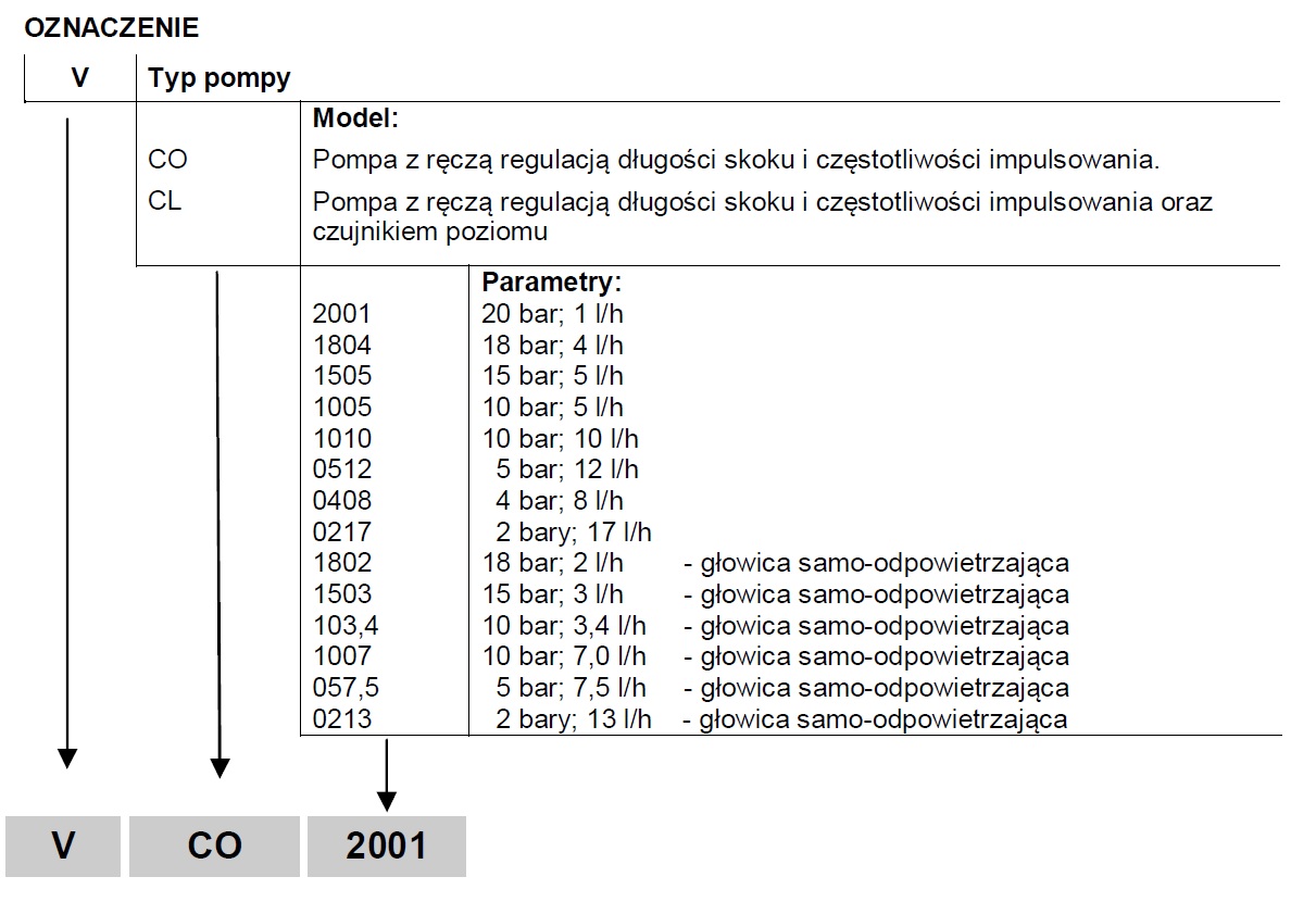 | V | częstotliwość suwów | Powtarzalność przy zakresie długości skoku | Pobór mocy przy max przepływie (230VAC) | Pobór mocy przy max przepływie (115VAC) | WAGA | |