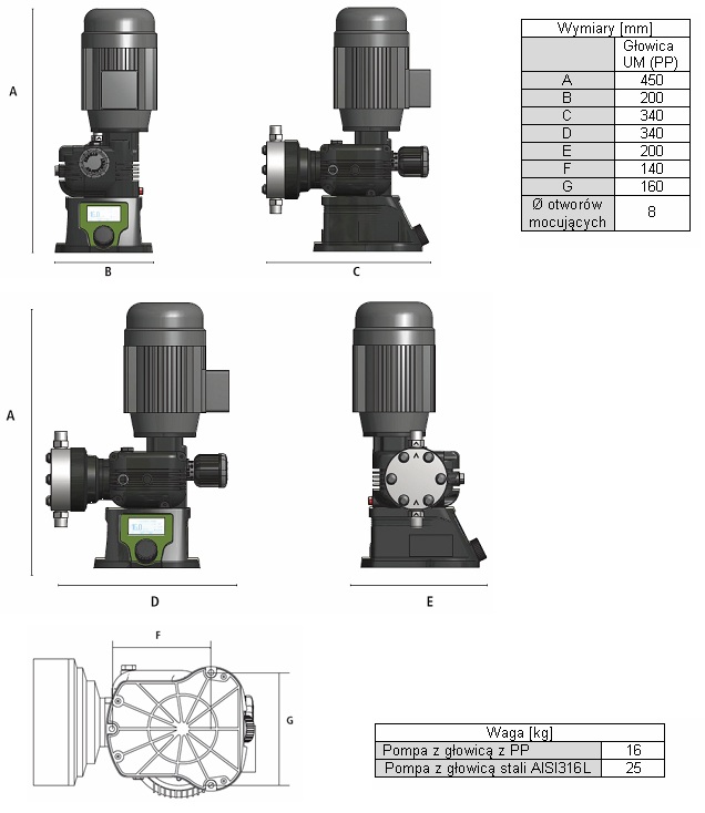 | manualne odpowietrzenie głowicy (głowice PVDF i PP) | |